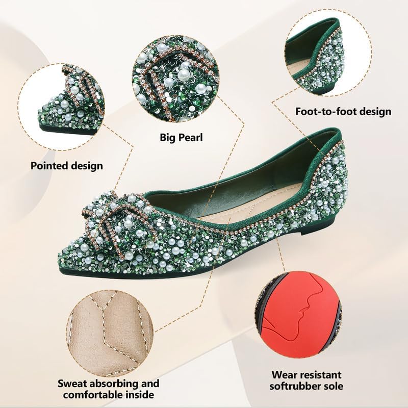 Women's Flats cushy Pointed Rhinestone Ballet Flats for Women Sparkle Elegant Dress Flats