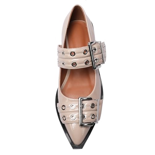 More information about Ballerina Flats for Women Pointed Toe Flats With Studs Buckle Ballet Flats supple low heeled flats