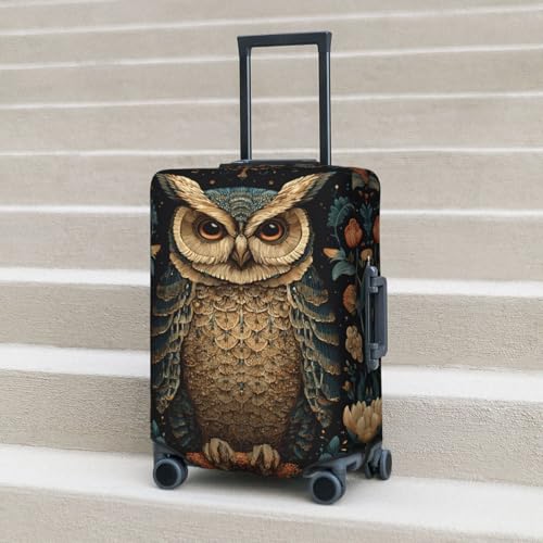 Vintage Owl Flowers And Vines Elastic Travel Luggage Covers Dustproof Scratch-Resistant Suitcase Protector Fit 22-24 Inch
