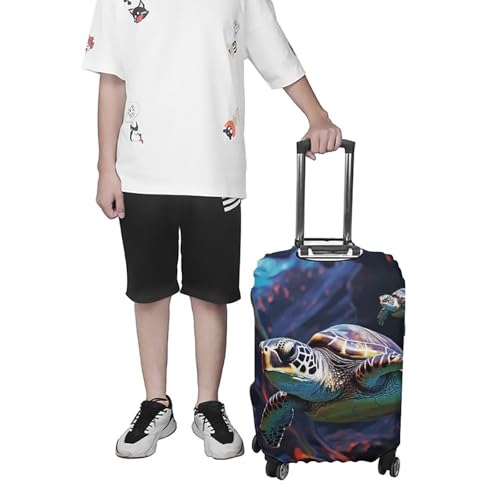 【 A Colorful Tropical Sea Turtle Luggage Cover】Fit quickly and easily in seconds. Durable and washable, 4 sizes available to fit almost any luggage. S: fit 19-21 inch luggage, M: fit 22-24 inch luggage, L: fit 26-28 inch luggage, XL: fit 30-32 inch luggage.【Easy Zipper Access & Installation】Features convenient zipper closures on the sides for side handles and a large top opening for the telescopic handle. Double-stitched all over, full of stretch and high elasticity, ensure your suitcase stays shut during the trip.【Superior Scratch & Dust Protection】Crafted from thick, durable material to shield your suitcase against scratches, dust, dirt, and minor impacts during transit and storage, keeping it looking new longer.【Washable & Reusable Suitcase Cover】Made from high-quality, stretchable fabric that's easy to clean. Simply machine wash for repeated use, offering a sustainable and economical travel accessory.【chic Luggage Protector】Available in various vibrant colors and patterns. Easily identify your bag at baggage claim while adding a personal touch and safeguarding your luggage from wear and tear. Perfect for everyday use. premium materials and excellent craftsmanship ensure long-lasting durability.