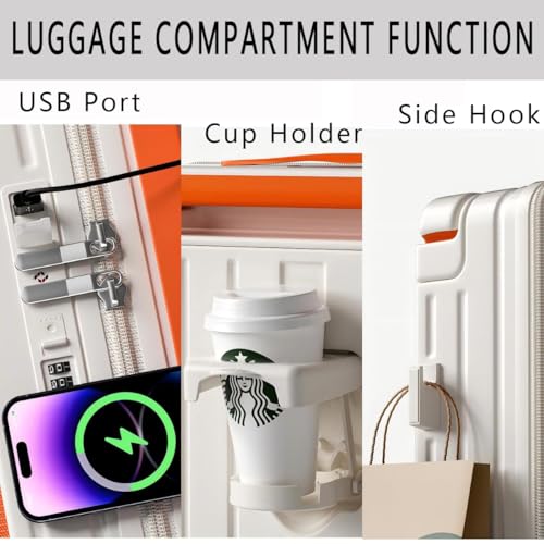 • 【Smart Travel Luggage】Front open suitcase USB port (battery not included) and love hands at no charge convenience with the collapsible cup holder.