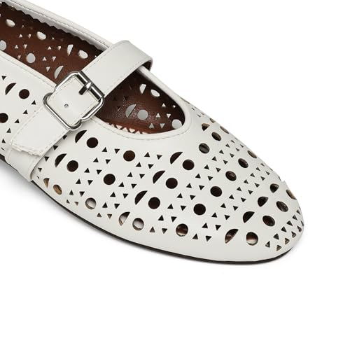 Goiphrri Ballet Flats Shoes for Women Fashion Summer Womens Flats cushy Dressy Buckle Strap Mary Jane Flats Round Toe Ballerina Flats for Women Wide Width Mesh Flats for Women