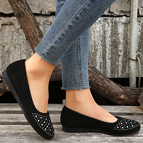 Women's Elegant Rhinestone Flats Pointed Toe Walking Shoes cushy Slip On Casual Work Dress Flats Shoes smooth Office Cute Flats