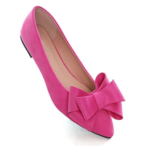 Why Choose TN TANGNEST Women Fashion Bowknot Flats Comfort Pointed Toe Dress Shoes Rose red 38(6.5)?