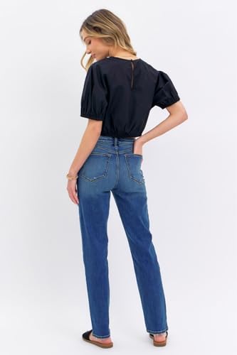 trending ! Judy Blue High-Waist Straight Leg Jeans – Medium Wash for Everyday Comfort 8601-