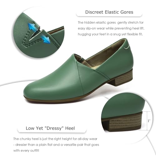 Fabric type: 100% LeatherOrigin: ImportedSole material: RubberShaft height: 5.88 Centimeters【COMFY AND CUTE】: The real leather is soft flexible and supple enough the wear these with no socks, just like buttery. They will stretch out quickly to a super comfy fit. & The rubber soles of shoes are grooved to avoid slipping on wet pavement. The design on the bottom to help with traction that you don't usually get. & Supportive, cushioned and soft padding. & The toe space is perfect, not too boxy, yet not pointed. Look cute and sharp. Major comfort! Very comfortable yet pleasing to the eye.【LOW YET DRESSY HEEL】: Heel height is perfect. Not completely flat but just enough. Very versatile, you could dress them up or wear them more casual. The heel height is low enough to feel like a flat but is high enough to be just a little bit dressy. Heel is very low almost none existing. It has just enough heel to look professional and still be comfortable. They give me decent support without elevating too much like heels do. Comfortable from the start.【SLIP-ON DESIGN OFFERS EASY ON/OFF】: A pair of flexible elastic gores and a curved topline provide this loafer style with an easy slip-on fit. Comfortable leather with a tiny bit of gore for ease in putting them on. The hidden elastic gore on the side gives extra room and some movement for the wide foot. Sized appropriately. True to size in medium width. No break in period. Fit like a glove. Feels like your comfy shoes, but can wear to work! This is a staple in your work wardrobe!【VERSATILE SHOE-DRESS OR CASUAL】: They are very sophisticated in a traditional way. Not something that will go out of style, will look great with everything from a skirt to dress pants to jeans. They will work for dress or casual. It looks classic and looks good with slacks, jeans and then is great with dresses either casual or formal. Nice slip-on shoe to dress up or down. Perfect dress or casual shoe. They are bound to become your go to pair.【JUST WHAT YOU ARE LOOKING FOR...】: If you need a nice pair of dress work shoes that is both comfortable and doesn’t look like “old lady” shoes that your mother or grandmother would wear, clunky men’s shoes, or “stripper” shoes. These were the perfect match! If you don't like noisy or clicky dress shoes, these are pretty quiet to walk around in. These wonderful “loafers” appear to be boots but they don’t look bulky,you can feel like you’re in boots but you’re not. Perfect for everyday use. first-class materials and excellent craftsmanship ensure long-lasting durability.