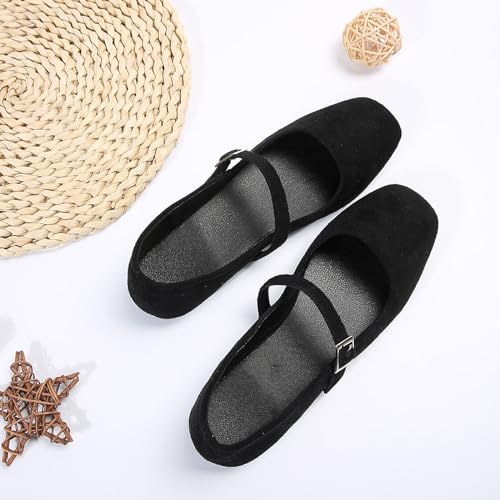 Mary Jane Flats for Women Dressy cushy Square Toe Ballet Low Heels Slip On Dress Shoes with Adjustable Buckle Strap Womens Retro Wedding Party Business Casual Ballerina Shoes