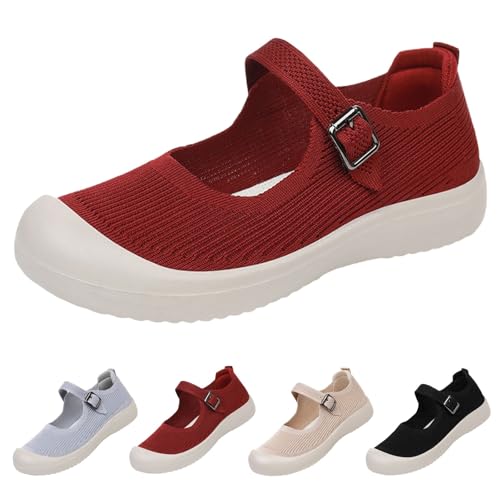Women's Mary Jane Flats Ballet Flats Dressy Casual Shoes cushy Knit Slip-on Walking Shoes with Adjustable Straps Arch Support
