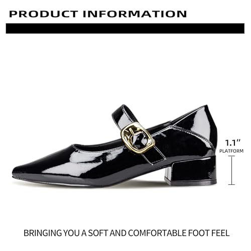 • timeless DESIGN: Elegant patent leather Mary Jane flats featuring a pointed toe silhouette and decorative gold-tone buckle closure