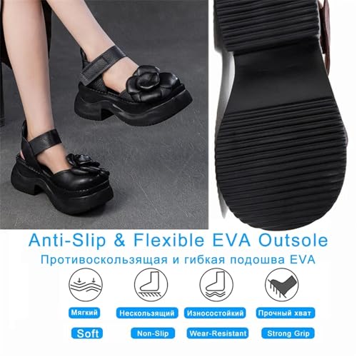 Women's Genuine Leather Flats - 7cm Mary Jane Hook Summer Platform Wedge Comfy
