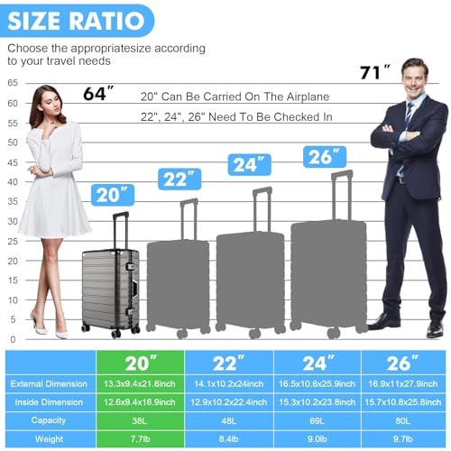 - 2οΈβ£ βοΈ **FAA-Compliant Check-in Luggage Sizes** β Precise Sizing: 20" inch Carry-On (7.0lbs) | 24" inch Medium/XL (8.8lbs) 26" inch Large (10lbs) | 28" inch Extra Large/XXL (11.5lbs) β Fits Delta/UA/AA requirements