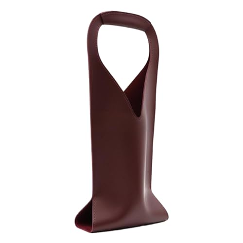 Single Bottle Carrier Lightweight Handbag PU Leather Bag Tote for Housewarming Party Picnic Wedding, Dark Red