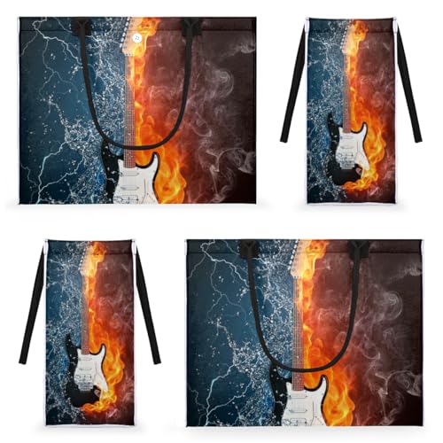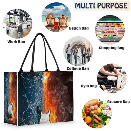 Guitar Music Fire Tote Bag for Women Large Beach Bag Reusable Tote Bags for Work Travel Beach Shopping