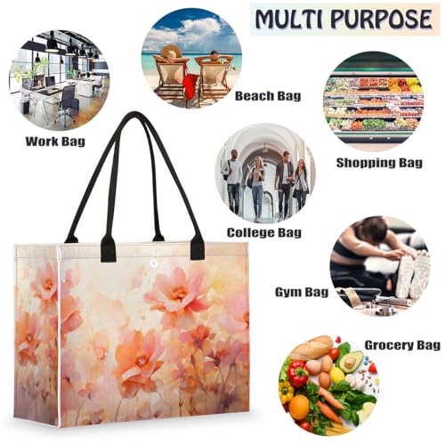 Fabric type: Felt FabricCare instructions: Machine WashLARGE CAPACITY: The tote bag is perfect for women, size 16.5x6.7x13 inches, shoulder strap length 9.8 inches. The tote bag is spacious and can easily organize all your daily items. Ideal for work bag, beach bag, travel bag or reusable grocery bags.MATERIAL: The tote bag is made of first-class felt fabric on the outside and polyester fabric on the inside. Printed with fashionable pattern, comfortable, durable and lightweight, suitable for all kinds of daily traveling use.NO ZIPPER CLOSURE: Our tote bags are designed with an open top and exterior button closure, which allows you to easily remove and store your items, and effectively protects your belongings from falling out. A must-have beach tote for work, gym, travel, beach or shopping.UNIQUE DESIGN: The large capacity beach tote bag is printed with a stunning pattern and has 1 inside zippered pocket. Keep your small important items such as cell phone, keys, glasses and other small items in privacy.MULTIPURPOSE: These are perfect beach bags for women that combines practicality and fashion. Great for women for work, beach, office, shopping, sports, yoga, grocery shopping and other occasions. Best gift for mothers, wives, girlfriend, friends and nurses. Perfect for everyday use. High quality materials and excellent craftsmanship ensure long-lasting durability.