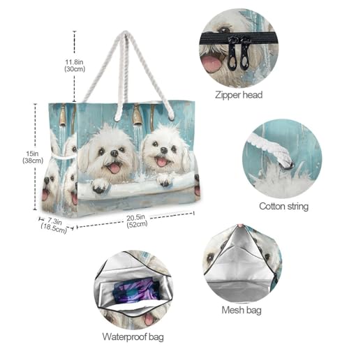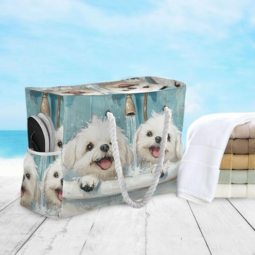 Cute Maltese Dogs Vintage Bathtub Sandproof Personal Item Travel Bag with side pocketes Bag For Work for Travel Gym Vacation