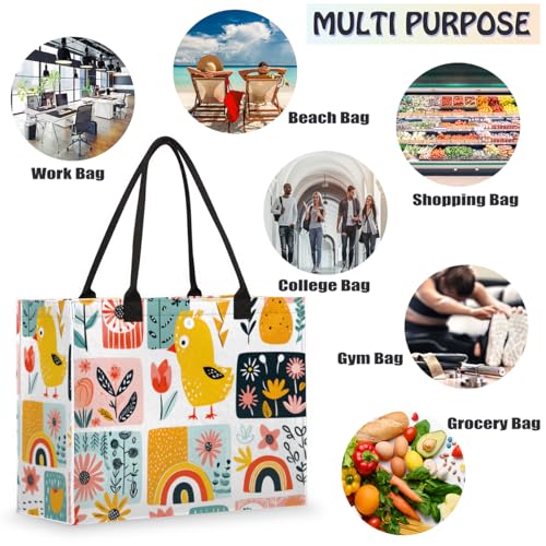 trending ! Cartoon Chicken Flowers Tote Bag for Women Large Beach Bag Reusable Tote Bags for Work Travel Beach Shopping