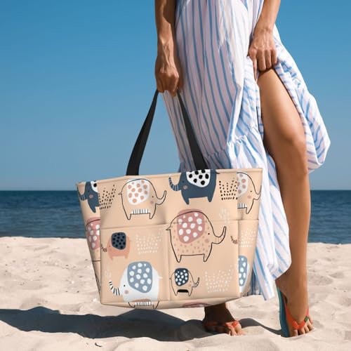 Cute Ink Drawn Elephants Print Large Beach Tote Bag for Women Extra Large Capacity Sandproof Waterproof Pool Bag Suitable for Swimming Pool Gym Groceries Travel