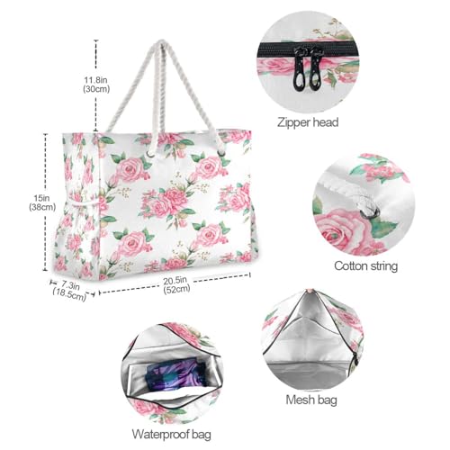 More information about Fresh Rose Beach Tote Bag for Women Large Pool Bags Carry On Bag With Wet Compartment for Beach Travel with Pocket Zipper Outdoor Tote Bag