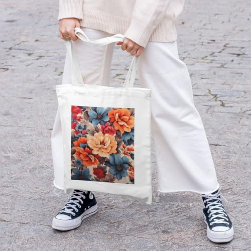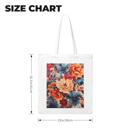 Floral Flower Print Large Canvas Tote Bag Cute Travel Shoulder Bag Reusable Washable Shopping Grocery Bags For Women Men