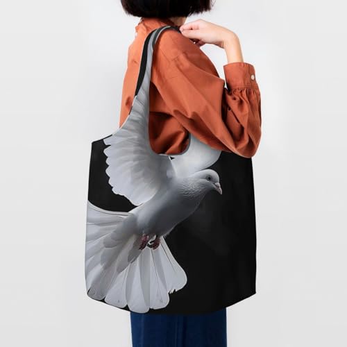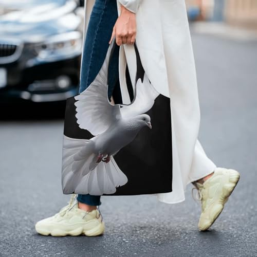 trending ! Flying Dove Reusable Canvas Tote Bag for Women for Work, Travel, Shopping, College and School, Black, One Size