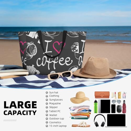 More information about I cherish Coffee Print Beach Pool Bags Tote For Women Ladies Large Gym Tote Carry On Bag For Weekender Travel Waterproof