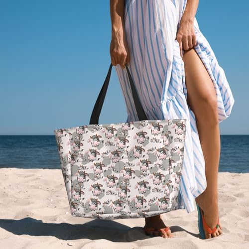 trending ! Large Beach Bags Water-resistant Sandproof - Funny Cute Cartoon Milk Cow_A Cute Beach Tote Bags for Women with Zipper