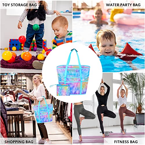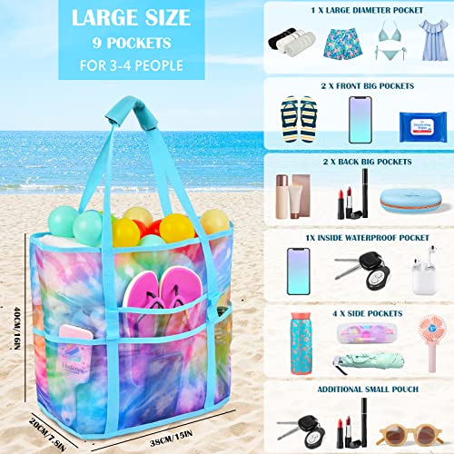 Mesh Beach Bag - Large Beach Tote Bag Women Pool Bags with Zipper 10 Pockets Foldable Beach Toy Bag for Towel, Flip Flops