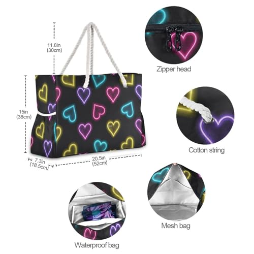 trending ! Neon Cololove reds Sturdy Tote Bag Beach with side pocketes Tote Bag Large outstanding for Travel Pool Swim Beach Vacation Necessities