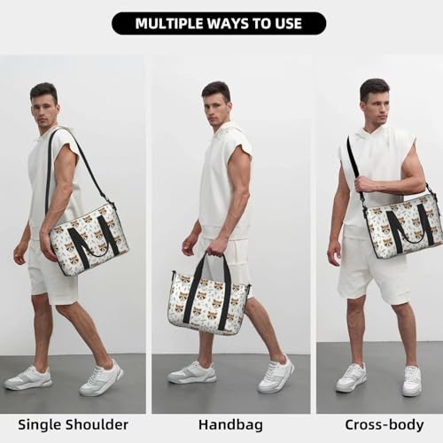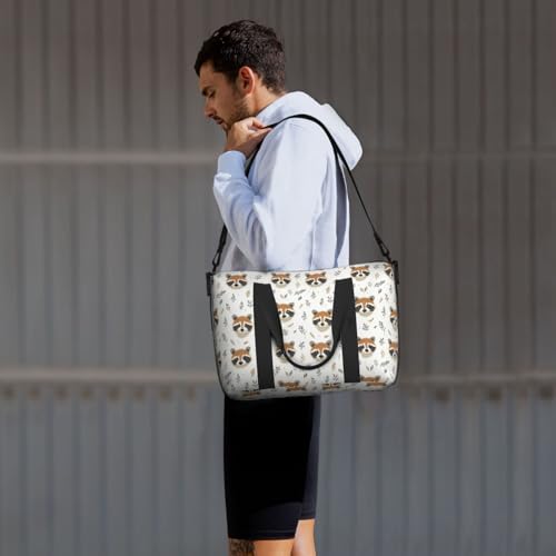 Laptop Tote Bag for Women Work - Floral Raccoon Cute Print Weekender Overnight Bags for Women Travel, Gym Duffle Bag for Men, Personal Item Crossbody Travel Bags for Men Carry On