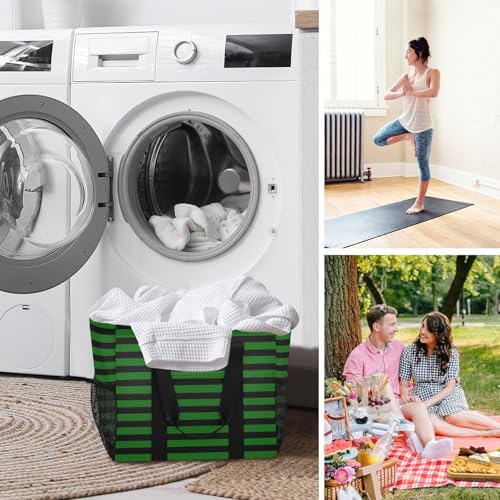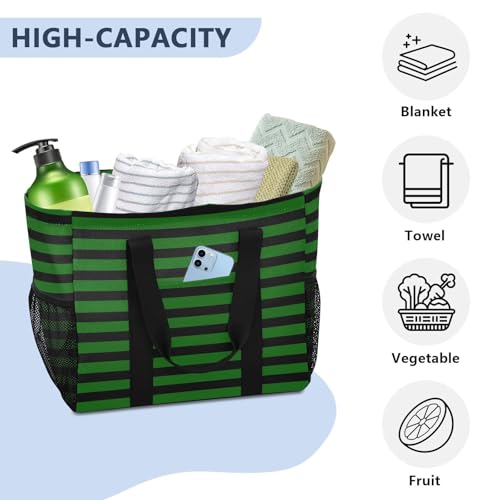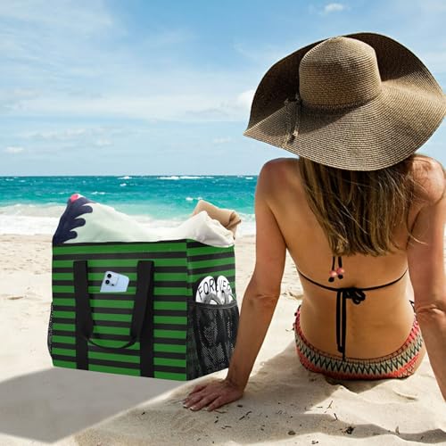 Green Black Stripes Large Beach Bag Waterproof Beach Tote Bags for Women Travel Gym Pool
