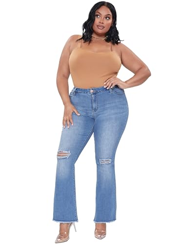 trending ! YMI Women's Plus Size Distressed Super Flare Jeans