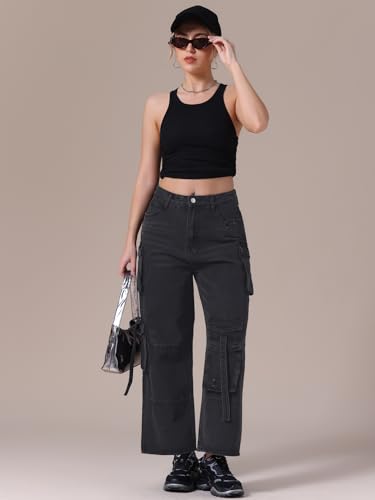 Fabric type: 70% Cotton, 20% Polyester, 10% RayonOrigin: ImportedClosure type: ButtonRise style: High RiseTrendy Cargo Denim Pants: Elevate your casual style with these baggy wide-leg jeans featuring cargo pockets for a fashionable lookFeatures: Relaxed Fit, Denim Fabric, Baggy Wide Leg, High Waist, Versatile Styling, Cargo Pockets with StrapsVersatile Casual Wear: Transition effortlessly from day to night in these cargo denim pants that blend a laid-back feel with on-point styleCare Instructions: Turn Inside Out, Machine Wash Cold with Like ColorsOccasion: This cargo denim pants is suit for casual outings; Such as home, party, school, street, trip, airport, travel and so on impeccable for everyday use. premium materials and excellent craftsmanship ensure long-lasting durability.
