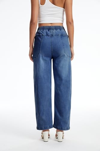 SESERAGI Womens Barrel Stretch Jeans Distressed Drawstring Wide Leg Loose Pull On Denim Jeans Pants