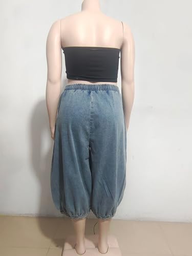 More information about Molisry Women's Denim Harem Pants High Waisted Elastic Y2K Loose Fit Wide Leg Baggy Capri Jeans Casual Streetwear