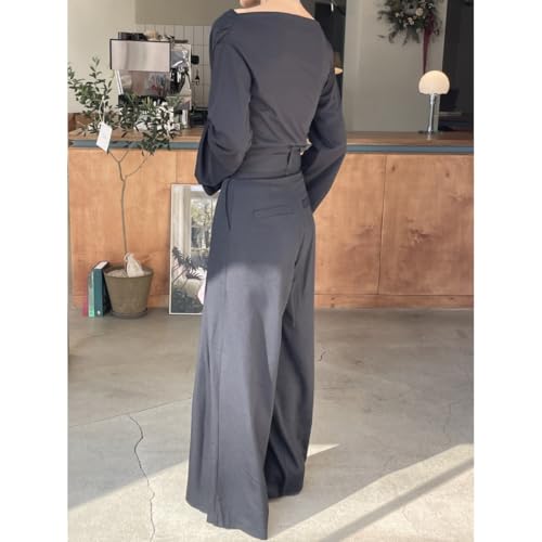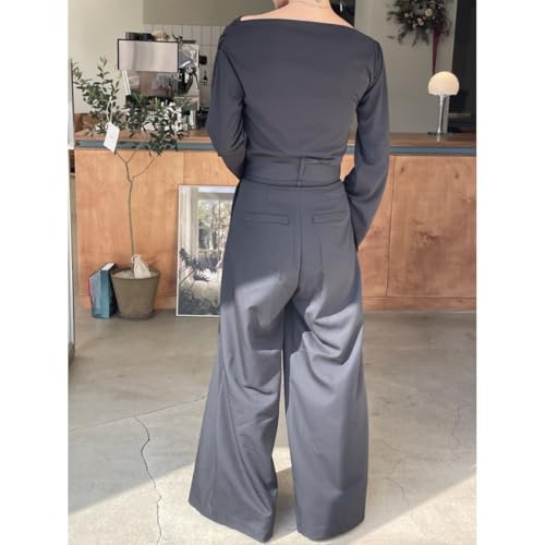 Women's High Waisted Wide Leg Pants Loose Fit Long Trousers Zipper Fly Business Pants Pockets Palazzo Suit Pants