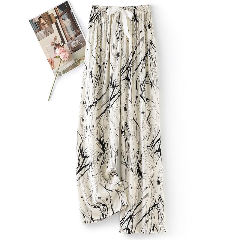 trending ! Women's Boho Printed Wide Leg Pants - High Waist Elastic Drawstring Flowy Casual Pants