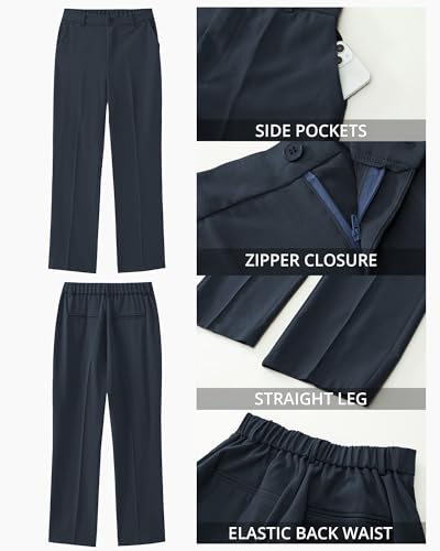 • Women's pants business casual feature with elastic back waist, zipper with button closure, 2 real side pockets and 2 fake back pockets, designed with a straight leg cut, these work trousers for women offer a vintage and timeless style.