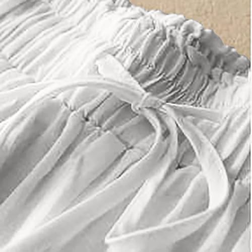 Women's Culottes Linen Cropped Pants with Pockets Wide Leg Pants Elastic Waist Casual Palazzo Trousers 2025 Fashion