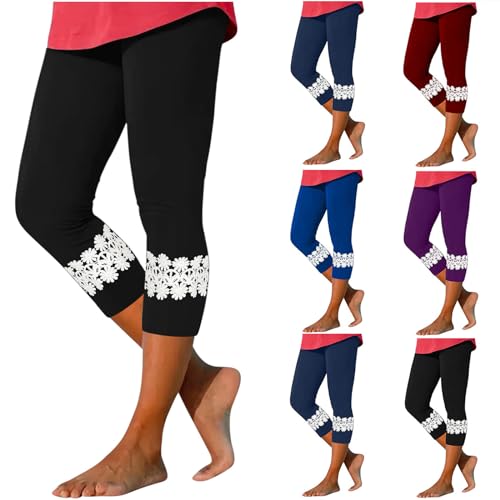 Plus Size Capris for Women Sexy Lace Solid Color Beach Pant Summer Comfy Knee Length High Waisted Cropped Pants