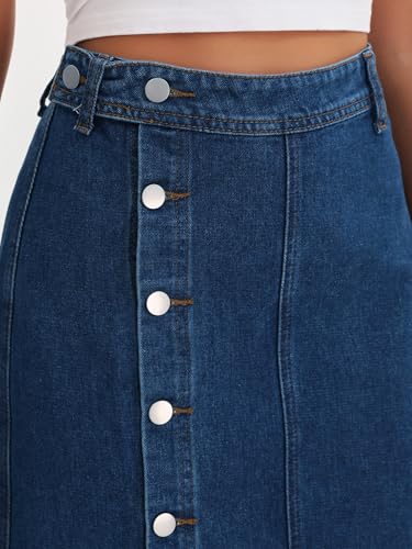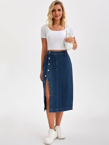 Why Choose Women Denim Midi Skirt High Waisted Button Up Casual Slit Jean Skirts?