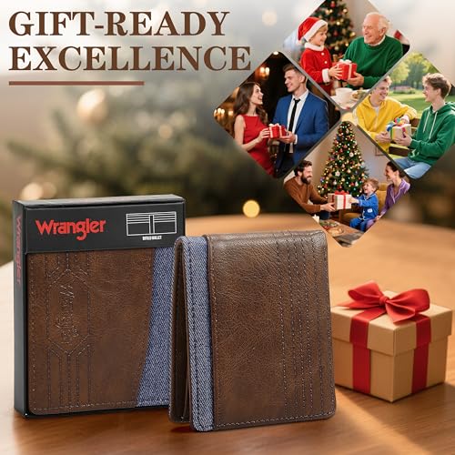 Brand: WranglerColor: BrownMaterial: PolyurethaneStyle: OversizedPattern: SolidPerfect Slim Profile: Measuring 4.33 x 3.54 x 0.6, this ultra-thin minimalist wallet slips seamlessly into front pockets. At just 0.6 inches thick, it eliminates bulk in jeans or dress pants.Storage Capacity: Designed with 9 quick-access card slots and 2 deep cash slot, this bifold wallet efficiently organizes credit cards, IDs, and bills. The minimalist layout ensures essentials are secure yet instantly available for daily use.Lightweight Comfort: Engineered for slim front pocket carry, its 0.6-inch profile feels virtually weightless. No more awkward bulges โ this thin wallet conforms to your body whether sitting, driving, or moving through crowded spaces.Ideal Gift for Men: This sophisticated wallet is the perfect gift for men on birthdays, Christmas, or Father's Day. Surprise your dad, brother, or friend with a practical present that shows thoughtful consideration.Denim-Inspired Durability: This durable wallet is made of sturdy fabric, resists fading and wear. The stylish design blends urban flair with long-lasting performance for everyday reliability. Perfect for everyday use. first-class materials and excellent craftsmanship ensure long-lasting durability.