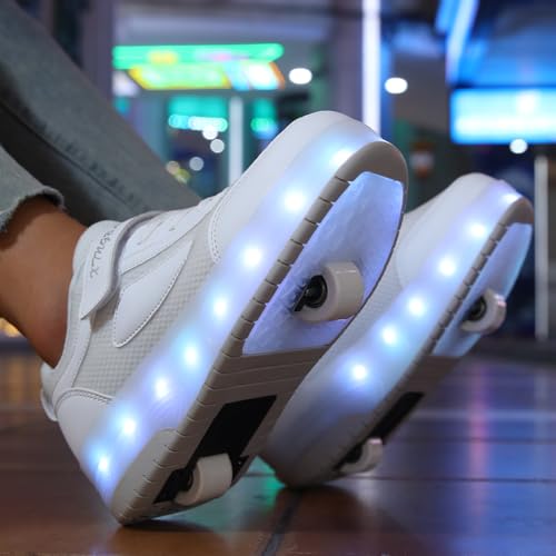 trending ! Kids Roller Shoes with Wheels Rechargeable LED Sneaker for Christmas Birthday Kids Gift Size 4.5 Big Kid