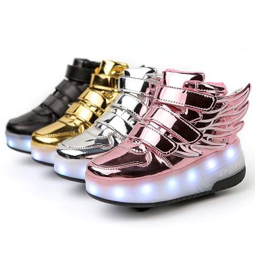 Kids LED Light Up Roller Skate Shoes with Wings Boys Girls USB Chargable Dancing Sneakers for Halloween Christmas Party Pink 30