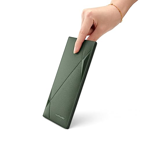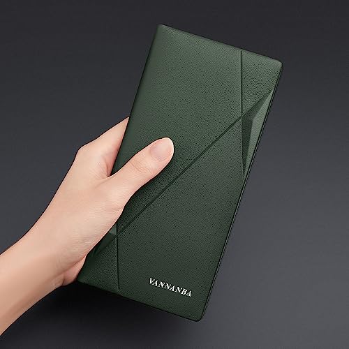 VANNANBA Long Slim Wallet for Men RFID Blocking Leather Checkbook Wallet,Thin Bifold Credit Card Holder with ID Window & Gift Box(Green Army)