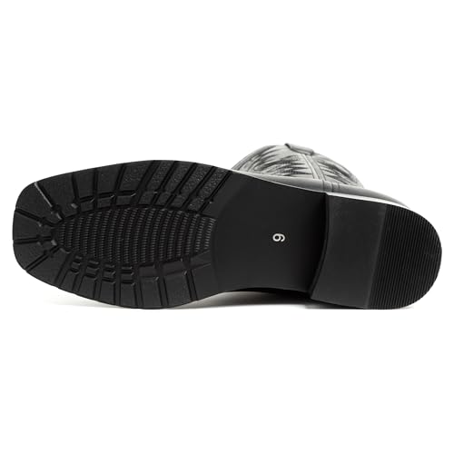 • Authentic Western Style: These mid-calf boots feature an embroidered cowboy design with a square toe for a rugged, timeless look.