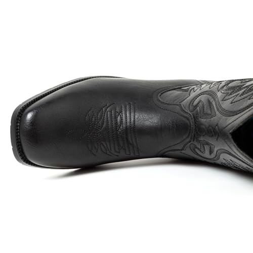 trending ! Metrocharm Men's Cowboy Western-02 Embroidered Square Toe Mid-Calf Boots