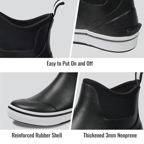 8 Fans Mens Deck Boots, Waterproof Rubber Rain Boots, Anti-slip Fishing Booties, Short Ankle Shoes for Boating, Outdoor, Size 7-14