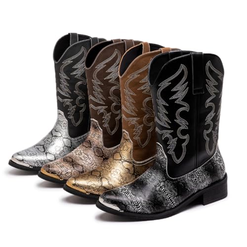 Sole material: RubberShaft height: Calf HighShaft circumference: 10.5 InchesOuter material: LeatherSTYLISH DESIGN: Western cowboy boots featuring classic embroidered shaft pattern and trendy snakeskin-textured vamp in multiple color optionsVERSATILE WEAR: Square toe design with pull-on style makes these boots perfect for both casual and dressy occasionsQUALITY CONSTRUCTION: Durable stitching throughout with reinforced seams and sturdy sole for long-lasting performanceCOMFORT FEATURES: Cushioned insole and stable heel provide all-day comfort, with breathable shaft designAUTHENTIC DETAILS: Traditional western stitching pattern on shaft, decorative toe rand, and classic riding heel complete the genuine cowboy boot look Perfect for everyday use. premium materials and excellent craftsmanship ensure long-lasting durability.