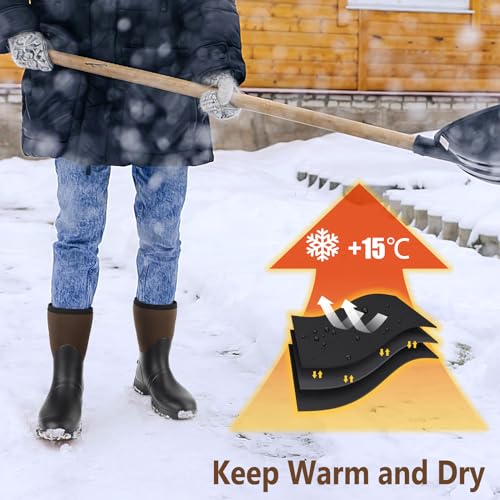 Kalkal Mid Calf Rubber Boots for Men, Rain Boots with 5mm Neoprene Insulated Work Boots Anti Slip Hunting Boots Waterproof Mud Boots for Gardening Outdoor Working Farming Fishing Size 8-13