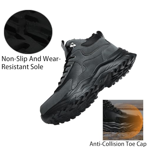 Sole material: RubberOuter material: SuedeClosure type: Lace-Up【HIGH-QUALITY MATERIALS】: This men's hiking boot is a pair of well-made shoes, the upper is made of durable leather, which effectively blocks rain, and is durable and scratch-resistant, bringing you a better experience and durability.【WARM LINING】: The lining of men's winter boots is made of high-quality short plush lining, which ensures that your feet are surrounded by extremely cozy lining in cold weather conditions, providing you with great comfort.【SOLE MATERIAL】: This men's hiking shoe is made of anti-slip and wear-resistant rubber material, with a concave and convex anti-slip texture design, which has excellent grip and cushioning, and can better protect your feet.【DURABLE AND COMFORTABLE】: This men's thick-soled snow boots has a durable leather upper with excellent waterproof performance, keeping your feet dry. It is the perfect choice for any outdoor activities and provides good balance and stability for the whole day.【APPLICABLE OCCASIONS】: Men's hiking boots are suitable for all occasions, such as outdoor, off-road, exploration, city, shopping, hunting, driving, motorcycle, hiking, etc.; and provide you with the best experience for various outdoor or indoor activities. Perfect for everyday use. first-class materials and excellent craftsmanship ensure long-lasting durability.